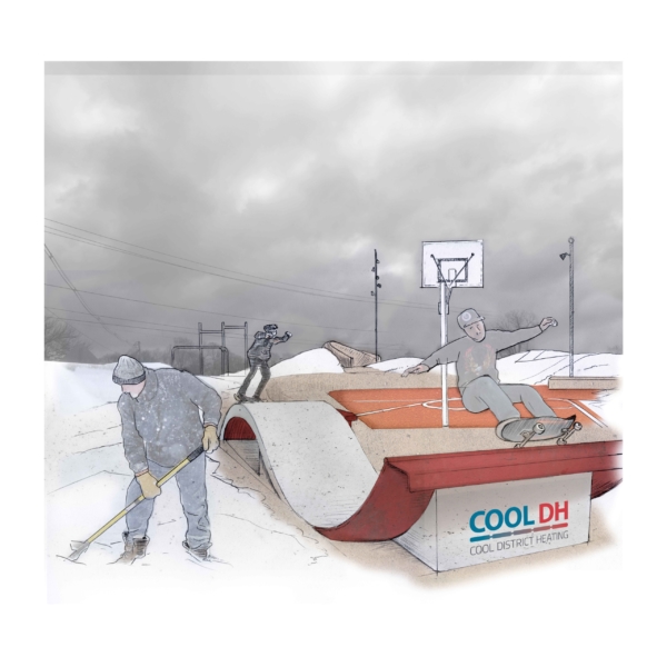 - In many cities, skateparks have become an important meeting place for people of mixed ages, not infrequently in connection with an outdoor gym or other activity areas. In summer, the trails stay dry and nice to ride, but in the fall and winter, wet leaves, puddles and snow can make them inaccessible. With the help of low-temperature district heating, it would be possible to keep the tracks in the skatepark a little heated so that snow melted away and the tracks dried up faster. This could make it possible to go outdoors in winter.
