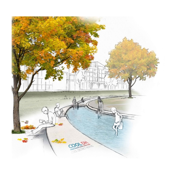 - Water heated to a comfortable temperature would be possible by means of low-temperature district heating. It could be a heated pool or, as in the example above, a water environment suitable for wading in conjunction with a visit to the park – whatever the season.